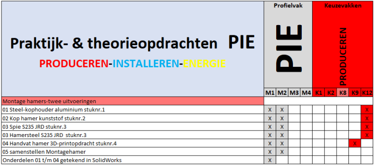 De Montagehamer is een leuk project dat door verscheidene leerlingen uit de afdeling PIE wordt gekozen. De leerling kan kiezen uit twee verschillende uitvoeringen, maar mag ze ook alle twee maken. Het is een opdracht die vrij snel te realiseren is en voornamelijk op een draaibank wordt uitgevoerd.